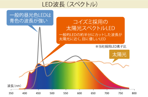 The adopted LED has been evaluated as having a higher visual comfort level*3 than general LEDs. It enhances visual comfort and makes you feel more stable throughout the day.