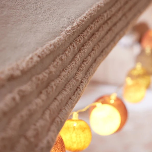 The canopy is available in two different colours, Natural and Peach. The canopy is made from 100% recyclable cotton.