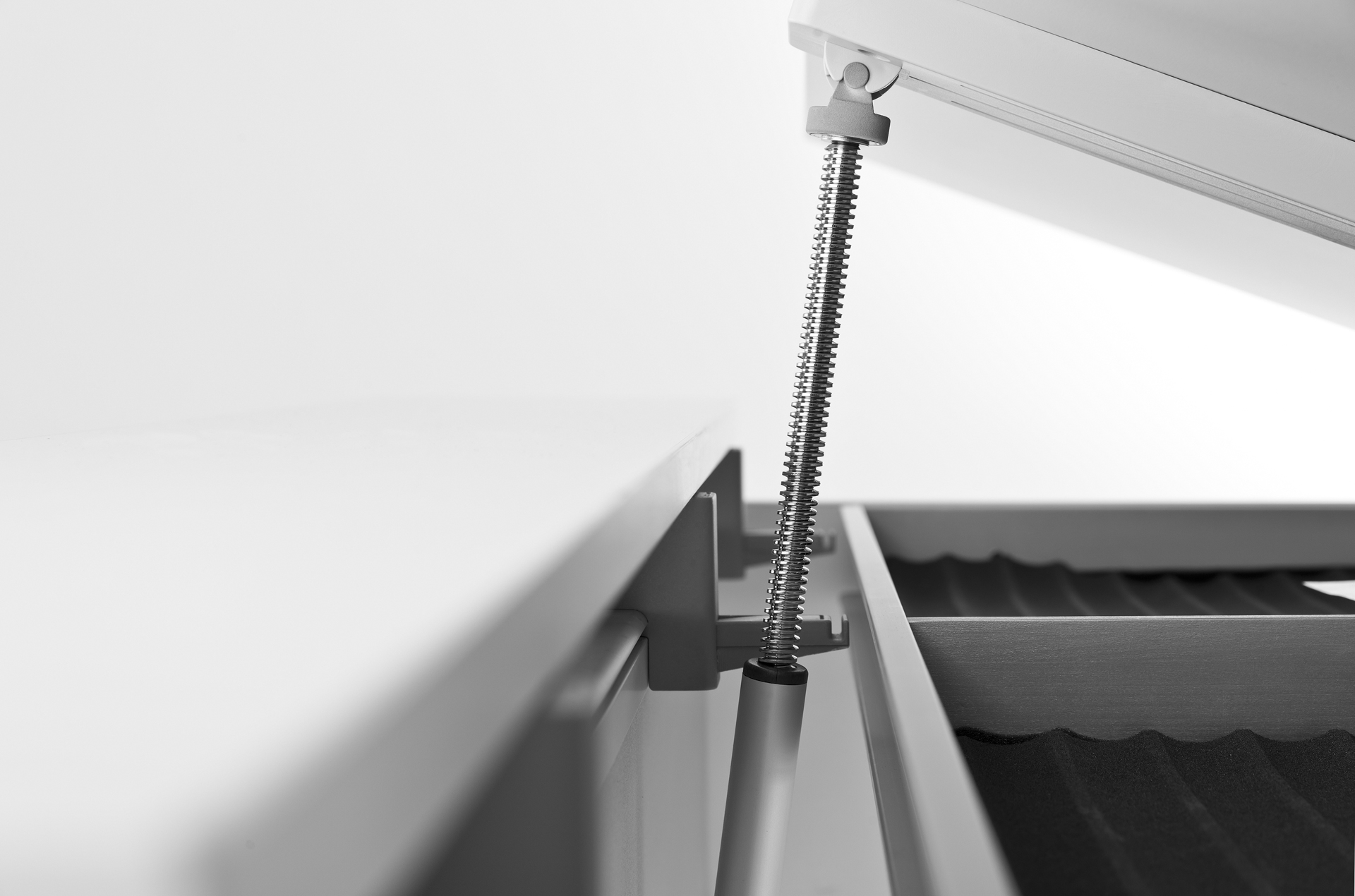 The desktop of the joker is very easy to operate, even for children. How is that possible? The super power of the spring-supported six-stage detent adjustment. If the desktop is tilted, the spring force pushes upwards. When lowering, the spring force slows down.
