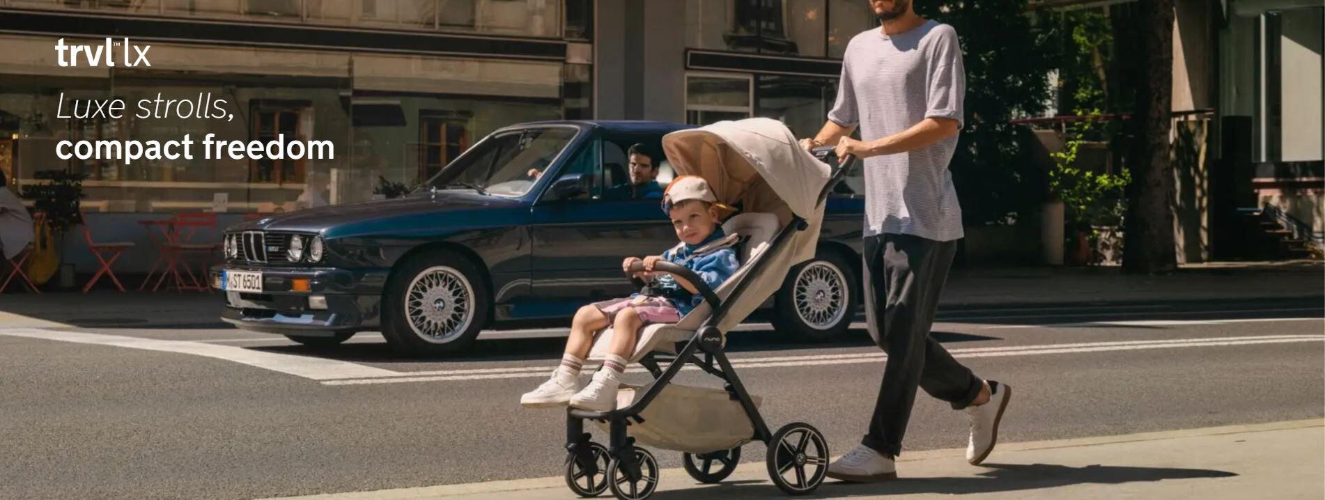 This compact stroller, featuring stepless roll-to-recline seat adjustment and one-hand folding, weighs only 7.1 kg and is perfect for everyday strolls and celebrations. With your baby as your partner, every moment, no matter how ordinary, has the potential to become extraordinary. Now's the time to experience everyday outings with your little one in a whole new light. The TRVL lx stroller gives you the agility and freedom to get going anytime, no matter how long the journey. Its design never feels weighed down, and its one-hand folding feature redefines how you think you can navigate the day with grace and ease. And with upgraded wheels, you'll be ready for whatever the road holds. The TRVL lx is a luxurious invitation to everyday adventures, turning every stroll into a celebration.