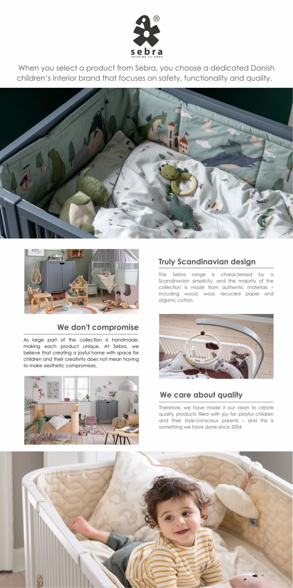 The Sebra Bed is a Danish design icon that has been tested for generations since Viggo Einfeldt drew the first lines over 80 years ago. The bed grows with your child with the help of the pull-out function, which means that the bed can be used for babies and juniors.