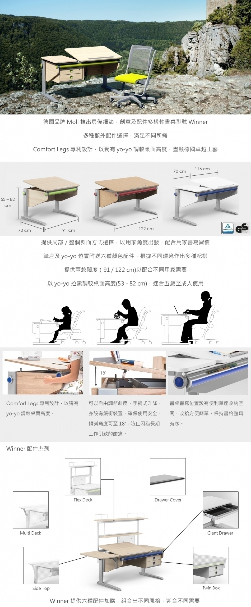 Comfort Legs專利設計,以獨有yo-yo調較桌面高度,盡顯德國卓越工藝
